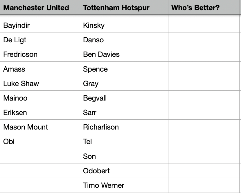 This takes us to the next challenge – to decide which team has the best squad to face this Game – Manchester United or Tottenham?